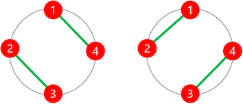 예를 들어, 원주 상에 점이 4개 놓여 있는 경우 위 조건을 만족하도록 쌍을 짓는 방법은 아래 그림에서 보인 것처럼 두 가지가 있다.