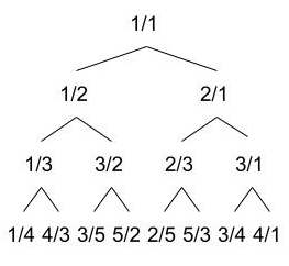 다음 규칙에 따라서 이진 트리를 만들자. 트리의 루트에는 를 적고, 가 적힌 노드의 왼쪽 자식에는 , 오른쪽 자식에는 를 적는다. 아래 그림은 이러한 이진 트리의 일부를 보여준다.